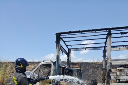 A fuoco un furgone che trasportava condizionatori sulla strada tra Caltanissetta e Mussomeli