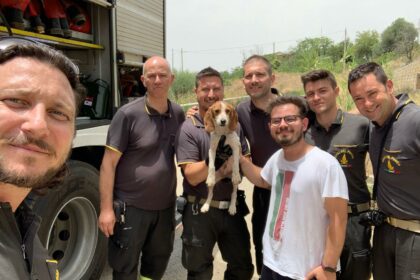 Un cane di razza beagle è stato salvato dai vigili del fuoco…