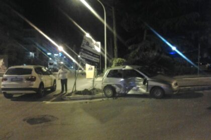 Schianto alla rotatoria di via Turati, suv contro auto: urto sradica una palma