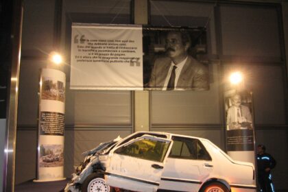 Nella foto: l'auto di scorta di Giovanni Falcone distrutta dopo la strage…