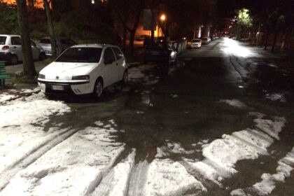 Caltanissetta imbiancata dai chicchi di grandine, ancora sparsi qua e là per…