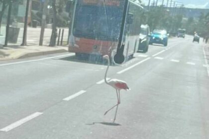 Un fenicottero rosa ha bloccato per un momento il traffico delle auto,…