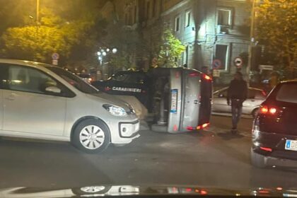 Caltanissetta, incidente in viale Regina Margherita: auto si ribalta