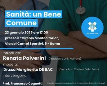 Sanità: è ‘un bene comune’, domani evento a Roma dell’Associazione ‘Uniti nel fare’