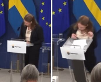 Ministra della Salute svedese Elisabet Lann sviene in conferenza stampa – Il video