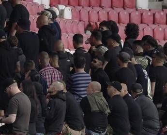 Italia, tifosi azzurri di spalle durante l’inno israeliano. Poi i cartelli: “Stop”