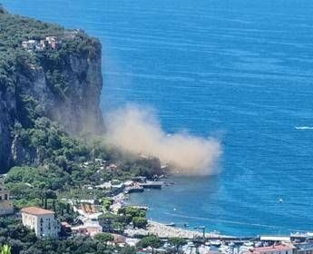 Paura a Vico Equense, crolla costone a picco sul mare