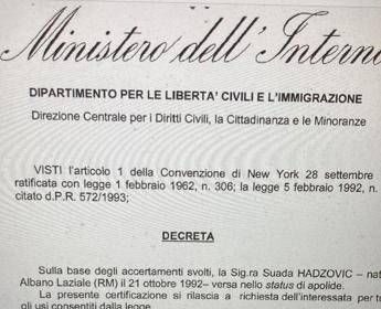 Per 33 anni ‘ostaggio’ dell’Italia dove è nata e cresciuta, ora è finalmente apolide: il decreto del Viminale