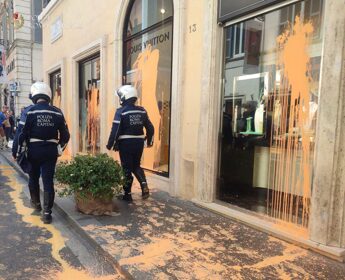 Roma, attivisti imbrattano vetrine di via Condotti: in 13 bloccati da polizia locale