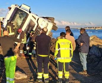 Ostia, camion si ribalta sulla scogliera: autista salvato