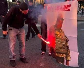 Roma, manifestanti ProPal bruciano immagine Crosetto: “Non ci arruoliamo”