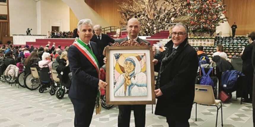 È stato consegnato a Papa Francesco il quadro raffigurante Santa Madre Teresa di Calcutta. Il quadro è stato consegnato dall’artista Giuseppe Bellomo, dal sindaco Giampiero Modaffari, nell’aula Paolo VI nel corso dell’udienza generale del mercoledì. La consegna che è stata resa possibile grazie a Vincenzo Siracusa che ha fatto da tramite con la Santa Sede al fine di consentire all’artista sancataldese Giuseppe Bellomo di esaudire questo suo desiderio. Il quadro lunedì mattina, si legge sul Giornale di Sicilia, sarà collocato nella cappella Pontificia del centro Madre Teresa in Vaticano. Vincenzo Siracusa ha reso noto altresì che, al più presto il Papa invierà una lettera di ringraziamento all’artista per questa sua donazione. Il quadro raffigura la santa degli ultimi, la donna che ha dedicato l‘esistenza per i poveri e gli ammalati. (Gds.it)