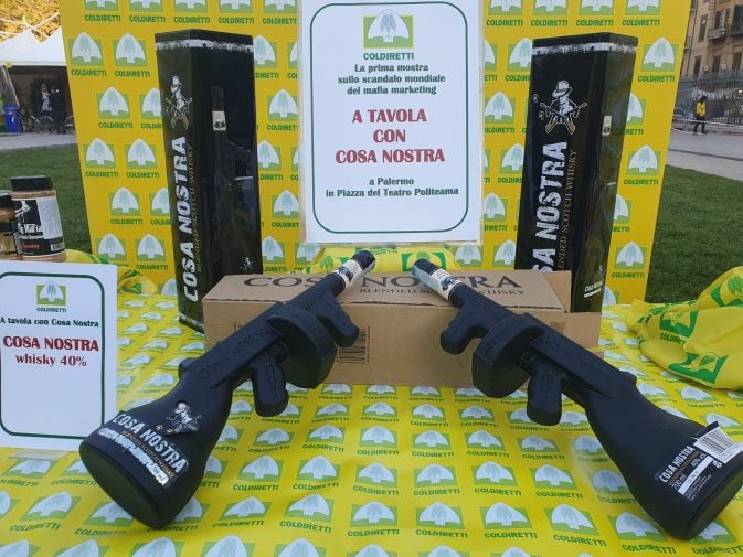 Dal whisky “Cosa nostra” con tanto di bottiglia a forma di mitra al vino Talha Mafia fino al caffè Mafiozzo ma anche il condimento sale e pepe Two Pig Mafia è allarme “mafia style” per l’agroalimentare italiano con milioni di euro di giro d’affari generati dall’uso di nomi legati alla criminalità. A denunciarlo sono Coldiretti e Filiera Italia che insieme a imprese, cittadini e istituzioni scendono in piazza a Palermo dove è stata esposta per la prima volta un’inquietante “collezione” dei più scandalosi prodotti agroalimentari venduti nel mondo con nomi che richiamano gli episodi, i personaggi e le forme di malavita organizzata più odiose, sfruttati per fare un business senza scrupoli sul dolore delle vittime e a danno dell’immagine del Paese.
