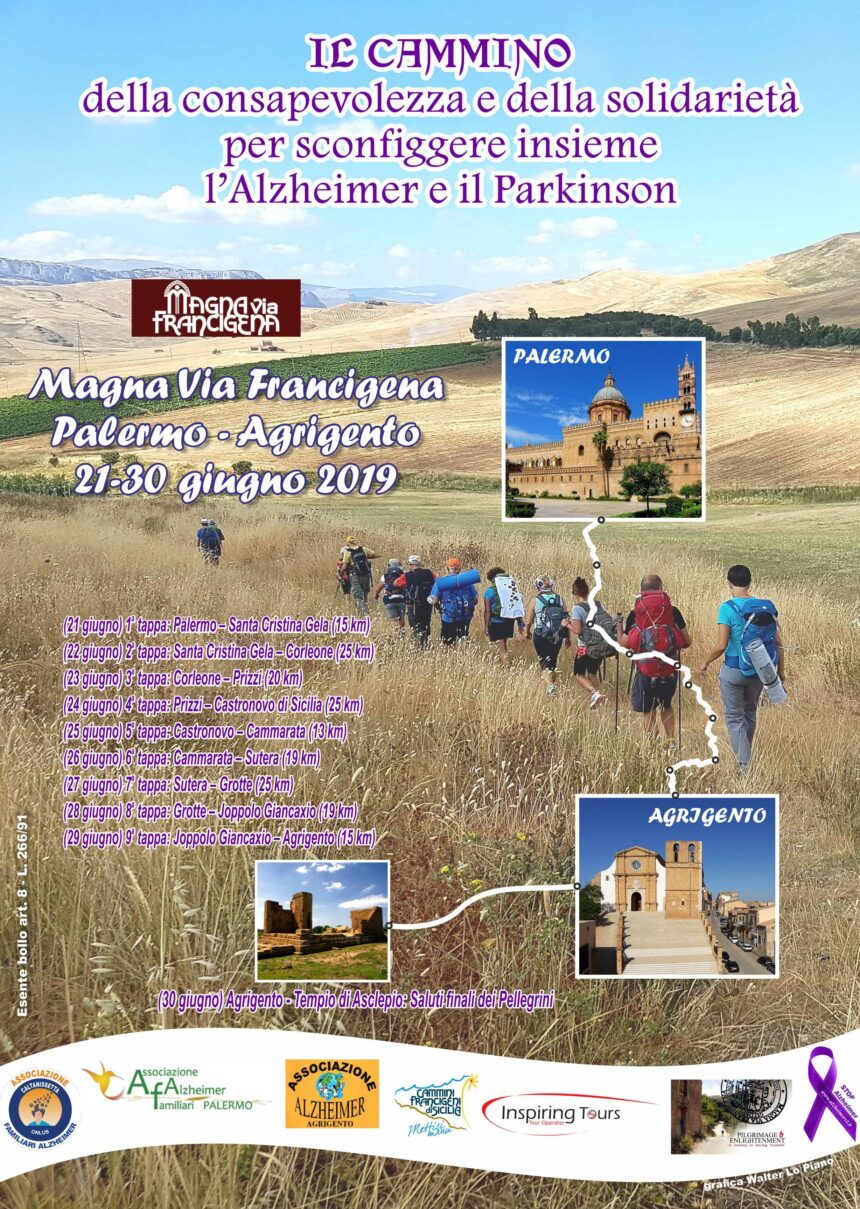 Il Cammino di circa 183 Km si articolerà in diverse tappe con partenza da Palermo il 21 giugno e arrivo ad Agrigento il 29 giugno. Il gruppo è formato da Parkinsoniani e familiari di persone malate di Alzheimer provenienti da diversi Stati tra cui Stati Uniti, Inghilterra, Spagna e Italia.