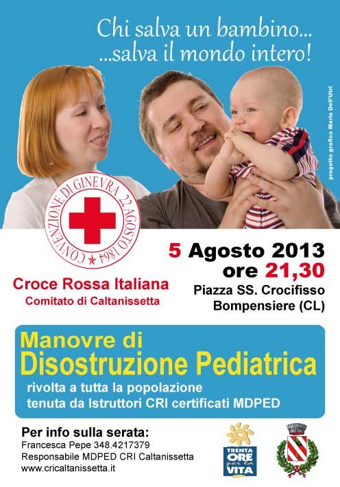 Non si ferma l’intensa attività di divulgazione del Comitato Provinciale della Croce Rossa Italiana di Caltanissetta. Su richiesta dell’amministrazione comunale di Bompensiere, gli Istruttori di manovre salvavita della Croce Rossa sono stati chiamati per una lezione interattiva alla cittadinanza sulle manovre salvavita. L’evento si svolgerà lunedì 5 agosto alle 21.30, in piazza del Santissimo Crocifisso, in cui i volontari, grazie all’ausilio di efficienti ed innovativi manichini, illustreranno come semplici ma importanti tecniche operative, facilmente riproducibili da ogni singolo individuo, possono salvare vite umane. Le dimostrazioni sono gratuite e riguardano tutta la popolazioni dai bambini agli anziani.
