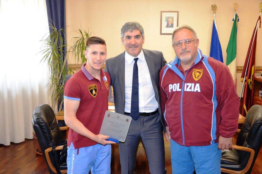 Stamane il questore di Caltanissetta Bruno Megale ha consegnato una targa ricordo a Mirco Scarantino che, per gli eccellenti risultati agonistici conseguiti – frutto del talento, della determinazione e del sacrificio – ha conferito lustro e prestigio alla Polizia di Stato.