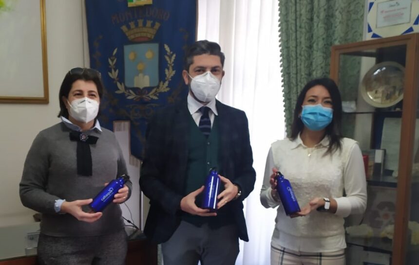 Aiutare i bambini ed i ragazzi a guardare al loro domani utilizzando le lenti della sostenibilità ambientale, della lotta a ogni tipo di spreco, dell’educazione a un uso consapevole e responsabile delle risorse. Un percorso nel quale il ruolo svolto dalla Scuola e dalle Istituzioni è primario. Lungo questo “viaggio” Caltaqua – Acque di Caltanissetta SpA, gestore del servizio idrico integrato per il territorio di Caltanissetta, ha fatto tappa a Montedoro. Nella sede del Comune, alla presenza del sindaco Renzo Bufalino che ha fortemente voluto questa iniziativa, Caltaqua ha consegnato le borracce riutilizzabili destinate a circa 150 tra alunni (5 classi di scuola primaria e 3 di secondaria di primo livello), docenti e personale dell’Istituto comprensivo “F. Puglisi” guidato dalla Dirigente Valeria Vella.