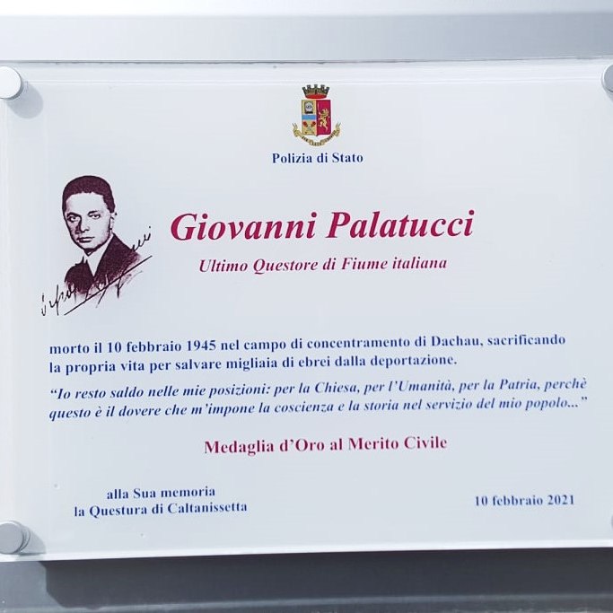 La cerimonia si svolgerà alla presenza del cappellano della Polizia di Stato don Vicente Genova, della Dirigente Scolastica Loredana Matraxia, dei componenti della locale “Sezione Calogero Zucchetto” dell’A.N.P.S., di una rappresentanza del personale docente e degli studenti dell’Istituto. Giovanni Palatucci, già Questore reggente di Fiume, morto nel 1945 nel campo di concentramento nazista di Dachau, Medaglia d’Oro al Merito Civile e riconosciuto “Giusto tra le Nazioni”, salvò dal genocidio molti ebrei stranieri e italiani.
