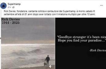 (Adnkronos) – Il mondo della musica piange la morte di Rick Davies, tastierista, cantante e anima dei Supertramp, una delle band più amate del panorama rock progressivo e pop internazionale. Davies è deceduto venerdì scorso nella sua casa di Long Island, nello stato di New York, all'età di 81 anni, dopo una lunga battaglia contro il mieloma multiplo, un tumore del sangue che gli era stato diagnosticato nel 2015. A darne l'annuncio della scomparsa della rockstar britannica è stato un comunicato ufficiale della band: "La Supertramp Partnership è profondamente addolorata nell'annunciare la morte del fondatore Rick Davies, dopo una lunga malattia. Rick è morto nella sua casa a Long Island il 5 settembre. Abbiamo avuto il privilegio di conoscerlo e suonare con lui per oltre cinquant’anni. Le nostre più sentite condoglianze a Sue Davies". Davies è stato l'unico membro stabile dei Supertramp dalla fondazione nel 1969 fino all'ultima esibizione dal vivo nel 2022. Con la sua voce calda e baritonale – contrapposta al falsetto angelico del co-fondatore Roger Hodgson – ha firmato alcuni dei brani più iconici della band, tra cui "Goodbye Stranger", "Bloody Well Right", "Cannonball" e "My Kind of Lady". Nato a Swindon, nel Wiltshire, in Inghilterra, il 22 luglio 1944, Richard Davies scopre l'amore per la musica a otto anni ascoltando casualmente un vecchio disco del batterista Gene Krupa. Inizia come batterista, ma ben presto trova la sua vera vocazione al pianoforte, strumento che suona da autodidatta con uno stile influenzato dal jazz e dal blues. Negli anni '60 milita in vari gruppi, tra cui i Rick's Blues (con Gilbert O'Sullivan alla batteria) e The Joint, prima di fondare i Supertramp nel 1969 grazie al sostegno finanziario del mecenate danese Stanley August Miesegaes. L'incontro con Hodgson – allora un giovane idealista con una voce unica – segna l'inizio di una collaborazione artistica destinata a fare la storia. Dopo due album poco noti, i Supertramp trovano il successo nel 1974 con "Crime of the Century", album che contiene l'inno "Bloody Well Right". Ma è con "Breakfast in America" (1979) che la band conquista il mondo: l'album vende oltre 20 milioni di copie, trainato da singoli indimenticabili come "The Logical Song", "Take the Long Way Home" e "Goodbye Stranger". Se Hodgson era la mente sognante, Davies era il cuore pulsante del gruppo, colui che teneva i piedi per terra. Dopo l'addio di Hodgson nel 1983 per divergenze creative e dispute legali – protrattesi fino a poco prima della morte di Davies – fu proprio Rick a tenere viva la fiamma della band, registrando altri quattro album e portando i Supertramp in tour fino agli anni Duemila. Oltre al lavoro con i Supertramp, Davies si è esibito negli ultimi anni con la formazione Ricky and the Rockets, prediligendo set più intimi orientati verso il blues, la sua prima passione. Le sue ultime apparizioni pubbliche risalgono al 2022. Nel corso della sua lunga carriera, Rick Davies ha saputo fondere virtuosismo e accessibilità, creando un ponte tra il rock più colto e la musica pop. Il suo modo di suonare il pianoforte elettrico Wurlitzer è diventato uno dei marchi di fabbrica del sound dei Supertramp. Dietro i riflettori, Rick Davies era un uomo riservato, lontano dalle esagerazioni tipiche del mondo rock. Era sposato dal 1977 con Sue Davies, sua compagna di vita e manager della band a partire dal 1984. Nel corso degli anni, ha mantenuto un profondo legame con le sue radici, tornando spesso nella natia Swindon per far visita alla madre, scomparsa nel 2008. (di Paolo Martini) —spettacoliwebinfo@adnkronos.com (Web Info)