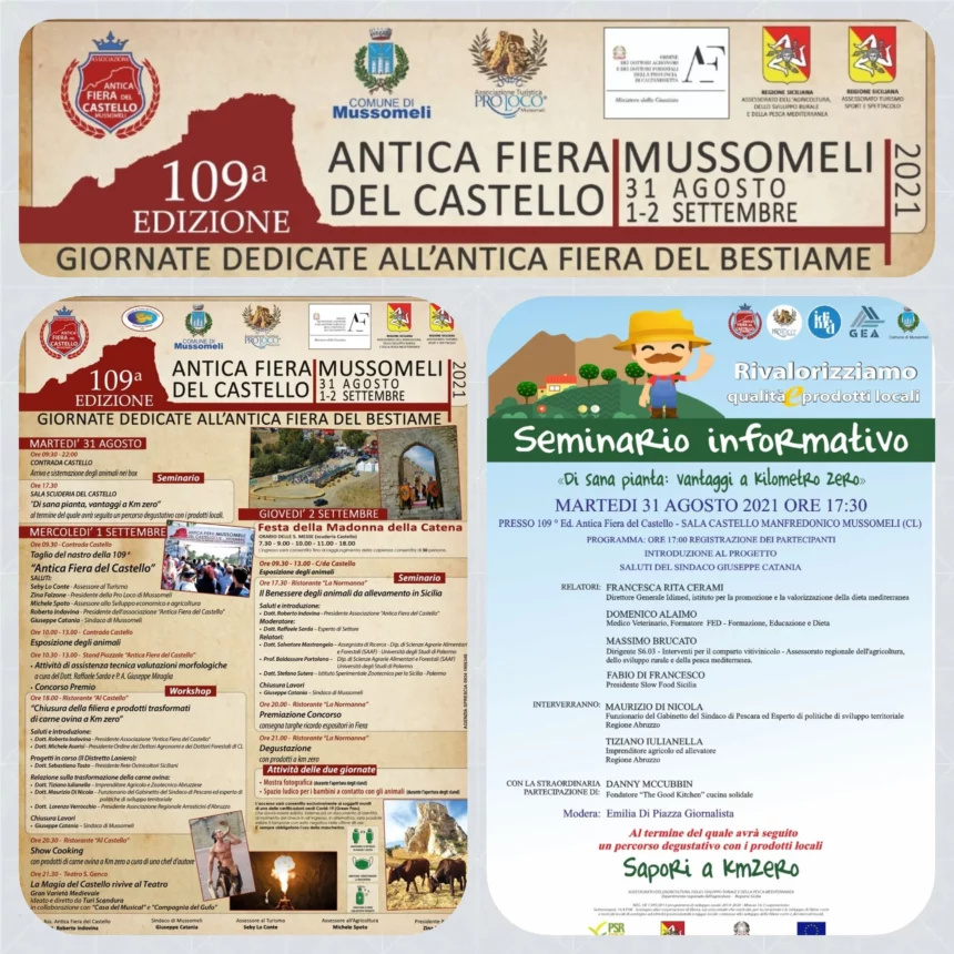 La 109 edizione dell'Antica Fiera del Castello, quest’anno si svolgerà da domani, martedì 31 agosto a giovedi 2 settembre, nel pieno rispetto delle regole di contingentamento e dei protocolli Anticovid. Oltre alla #esposizione degli ovini e dei bovini sono previsti altri eventi di grande valore sul piano tecnico, scientifico e commerciale. In particolare: Martedi 31 agosto, alle 17.30, si svolgerà il #seminario informativo: “Di sana pianta-Vantaggi dei prodotti a km zero” e successiva #degustazione dei prodotti del territorio. Mercoledi 1 settembre, alle 18.00, si svolgerà il #workshop “Chiusura della filiera e prodotti trasformati di carne ovina a km zero” e successivo #showcooking con prodotti a base di carne ovina. Giovedi 2 settembre, alle 17.30, si svolgerà il #workshop “Benessere degli animali da allevamento in Sicilia” e successiva #degustazione di prodotti a km zero. Inoltre, mercoledi 1 settembre, è previsto un evento estremamente importante per il settore zootecnico che riguarda il #concorso per il miglioramento delle razze ovine autoctone, utile a dare più valore, anche economico, agli ovini ed alle aziende presenti nel nostro territorio. Gli eventi sono organizzati dal Comune di Mussomeli con la collaborazione operativa dell'Associazione Antica Fiera del Castello ed il supporto dell'Associazione Proloco.Ne dà notizia il sindaco Giuseppe Catania.