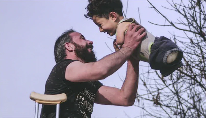 La sua foto – dal titolo «Hardship of life» (la difficoltà della vita)- che lo ritrae insieme al padre, scattata dal fotografo turco Mehmet Aslan, ha vinto lo scorso ottobre il «Siena international photo awards» e ha fatto il giro del mondo. Lo scatto ritrae padre e figlio insieme in un momento di gioco e tenerezza. Papà Munzir si appoggia su una stampella, ma innalza verso il cielo, suo figlio Mustafa, che ride beato.