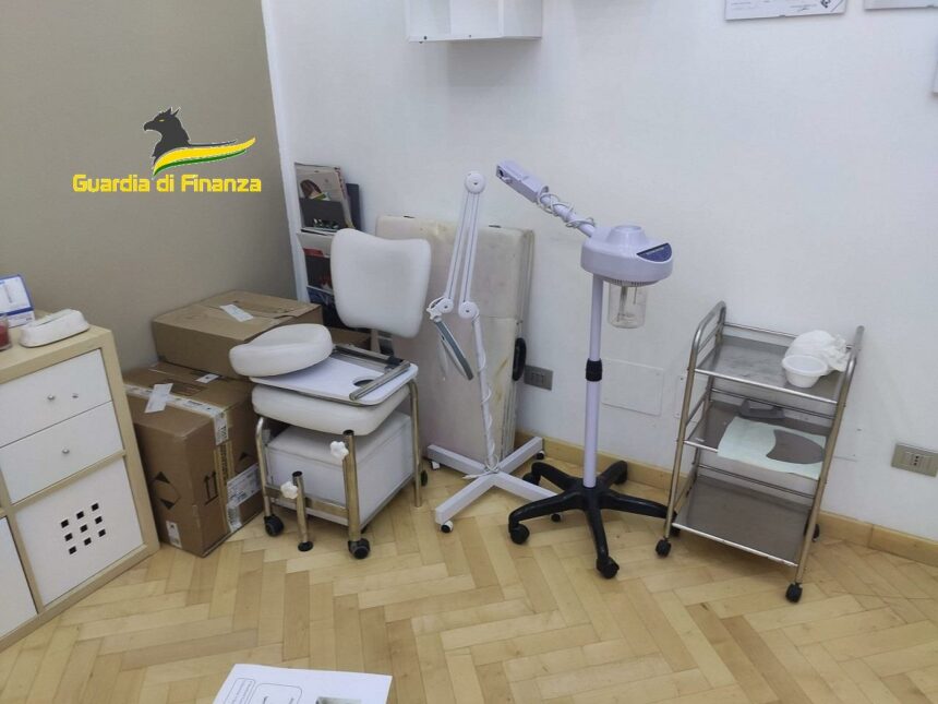 L’attività illecita veniva svolta presso un locale ricavato all’interno di un’abitazione privata: le Fiamme Gialle, infatti, hanno scoperto una stanza dotata di tutte le attrezzature utili per lo svolgimento della professione estetica (lettino, macchina scaldacera, macchina per pulizia viso, lampada illuminazione trattamento estetico, smerigliatrice per unghie, vari smalti, rossetti e matite), pronte per essere utilizzate.