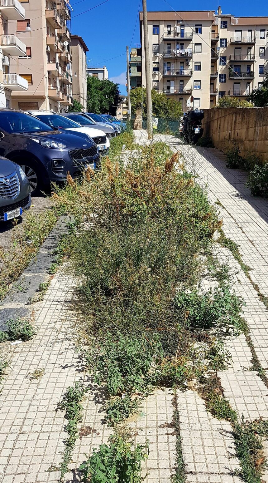 Un anno fa scrissi la seguente nota. Nella Caltanissetta “verde e stellare” a noi contemporanea, in via Lazio, lungo il marciapiede che costeggia il muro che recinge il piccolo mercato di frutta e verdura della Coldiretti, mi sono imbattuto in un'imprevista e insidiosa espressione vegetale della natura. E qui non si tratta di erbe, di verdure fresche e commestibili, come quelle esposte, e in vendita, a pochi passi di distanza, bensì di cosiddette “erbacce”. Le selvatiche sebbene autoctone piante in questione, approfittando della mancata manutenzione, della sconnessione e della frattura della pavimentazione, qui vegetano floride e incontrollate. E alquanto infide per i passanti. Che altro dire? Al buon cuore dell’Amministrazione Comunale Nissena l’intervento di risanamento pavimentale.