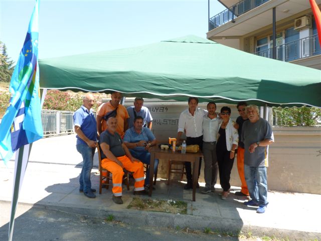 Sit-in di protesta dei lavoratori in servizio all'Ato Ambiente Cl1, oggi a Caltanissetta, per denunciare il mancato pagamento degli stipendi di maggio e giugno e della quattordicesima mensilità. Per questo motivo i netturbini hanno allestito un gazebo davanti alla sede Ato di via Salvo D'Acquisto dove sono rimasti per qualche ora alla presenza del segretario provinciale della Funzione Pubblica Cgil, Luisa Lunetta, del segretario organizzativo Andrea Morreale e del segretario della Camera del Lavoro di San Cataldo, Manuel Bonaffini.