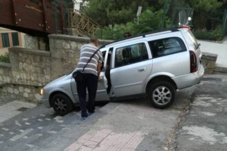 San Cataldo, non si accorge della scalinata e finisce giù con l'auto