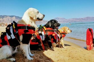Kira, Marcus e Thor, cani bagnino della scuola italiana cani salvataggio, hanno…