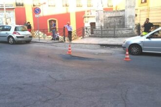Caltanissetta, strada sprofonda al passaggio del bus: sul posto Polizia Municipale e tecnici