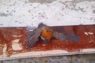 Caltanissetta, pettirosso resta intrappolato nella colla per topi: salvato dal cuore d’oro di due nisseni
