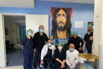 Caltanissetta, il coronavirus al posto delle spine sul capo di Gesù: il quadro donato da una operatrice del 118 al pronto soccorso infettivologico