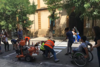 Strisce pedonali da rifare a Caltanissetta, giovani disabili al lavoro con gli operai
