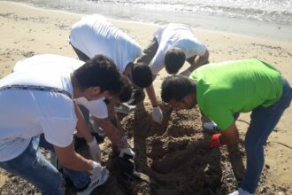 Copertoni, plastica, vetro e residui elettronici: i ragazzi della cooperativa “Arcobaleno 2013” di Sommatino ripuliscono la baia Maddalusa di San Leone