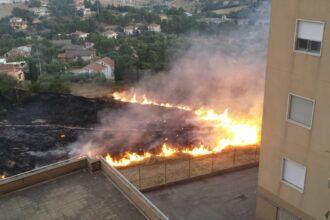 Incendio minaccia palazzine al quartiere Pinzelli. Fiamme si avvicinano ai binari