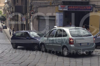 Impatto frontale tra due auto in via Messina: tutti illesi