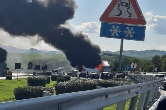 Mezzo pesante a fuoco sulla A19 all’altezza di Enna: code in autostrada