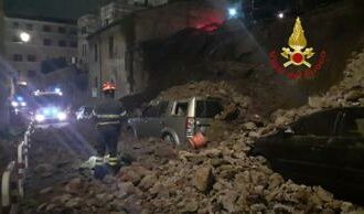 Crolla muro di tufo a Trastevere, auto sotto le macerie – Foto