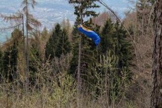 Cade con il parapendio e resta sospesa su un albero a 30 metri da terra