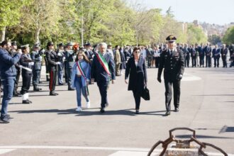 Festa della Liberazione, deposta corona d'alloro al Monumento ai caduti: con le autorità anche la baby sindaco