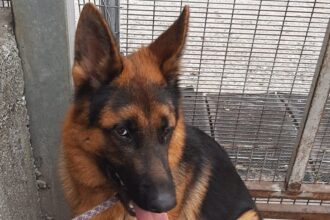 Un cucciolone di pastore tedesco che viveva in un piccolo recinto abbandonato…