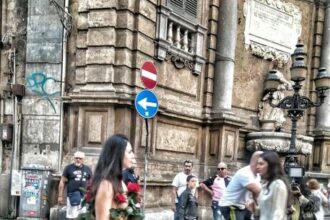 Donna in giro per Palermo vestita solo di rose: è la performance di una artista