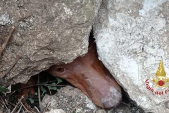 Cirneco insegue preda e resta intrappolato tra due massi: salvato dai vigili del fuoco