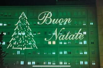 Il Sant'Elia illuminato a festa per la notte di Natale. I vertici…