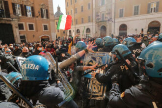 Scontri in piazza Montecitorio per le riaperture, ferito un poliziotto. Sette i fermi