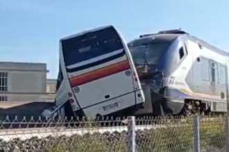 Un treno ha travolto un pullman che era fermo sulle rotaie per…