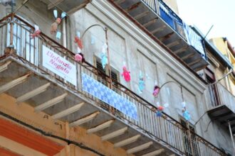 “L'infanzia negata”, esposta in un balcone di Caltanissetta un'opera dedicata ai bambini e alla pandemia