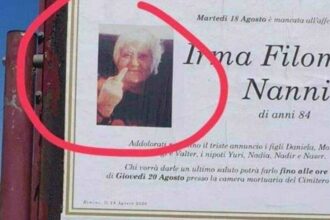 Donna con il dito medio alzato sul manifesto funebre: la foto di Filomena diventa virale