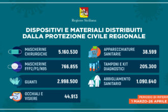 In Sicilia sono quasi 6 milioni le mascherine distribuite dall'inizio dell'epidemia, 3 milioni di guanti e 1 milione di camici